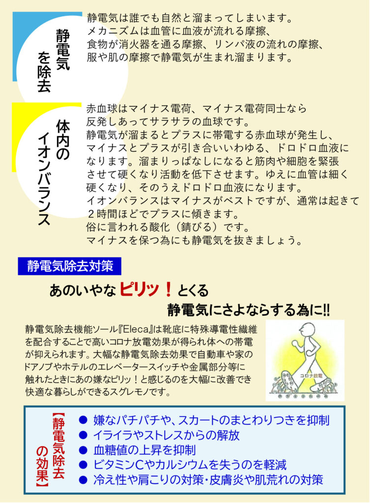 体内に溜まった静電気を外へ放出します。