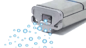 小さな金属チップがイオン発生量を増幅させ、さらにイオニオンを装着したとき、身体をマイナスイオン帯電させイオンバリアで包み込むための特許技術です。