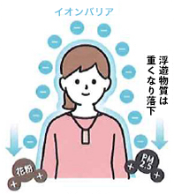 ①呼吸範囲の浮遊物質をマイナス帯電しやすくします。